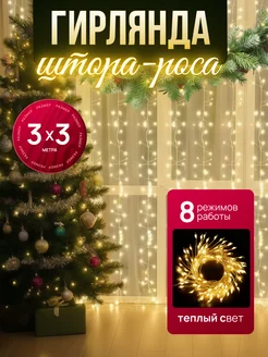 Новогодняя гирлянда штора хвойная лапа мишура 3х3