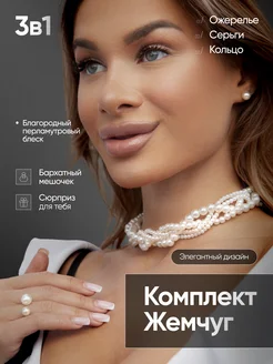 Комплект бижутерии с жемчугом колье, серьги, кольцо