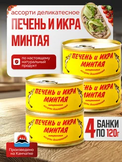 Печень и икра минтая натуральные, консервы 120 г, 4 шт