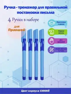 4 ручки-тренажера для ПРАВШЕЙ, цвет корпуса синего цвета