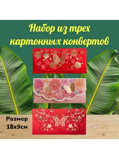 Красный конверт для денег с иероглифами подарочный