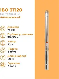Насос 3ti20 с кабелем 20м. скважинный, 0,55 кВт