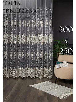Тюль 300х250 см с вышивкой в гостиную и спальню
