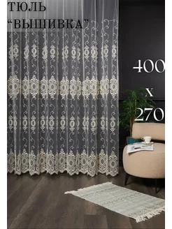 Тюль 400х270 см с вышивкой в гостиную и спальню