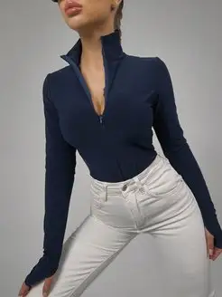 Лонгслив на замке кофта трикотажная с глубоким декольте