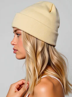 Шапка осенняя весенняя бини стильная с отворотом вязаная