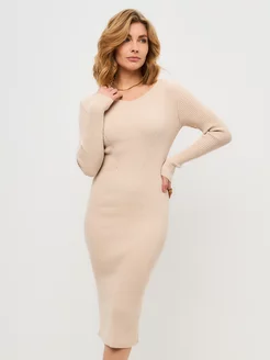 Вязаное платье лапша трикотажное облегающее в рубчик