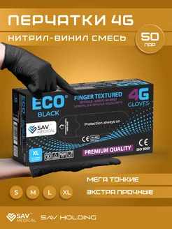 Одноразовые перчатки 4G нитриловые черные 50 пар 100 штук