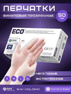 Перчатки одноразовые виниловые прозрачные 100 шт 50 пар
