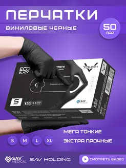 Перчатки одноразовые виниловые черные 100 шт 50 пар