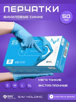 Перчатки одноразовые виниловые синие 100 шт 50 пар