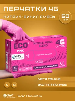 Одноразовые перчатки 4G нитриловые розовые 50 пар 100 штук