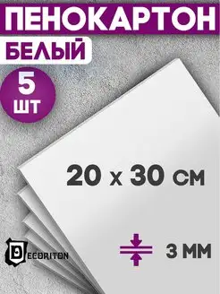 Пенокартон белый матовый, 3 мм, 20х30 см, 5 шт