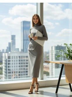 Юбка карандаш миди осень