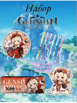 Пенал геншин импакт Кли ( брелок, ручка, значок)