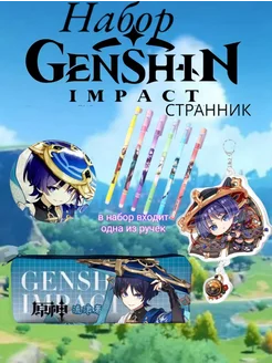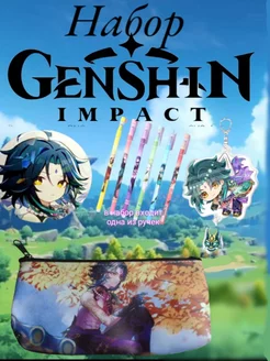 пенал геншин импакт Ху Тао (значок, ручка, брелок)