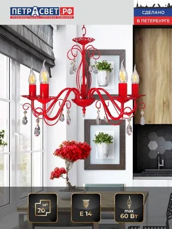 Люстра подвесная красная 5 ламп хрусталь Аврора S1242-5