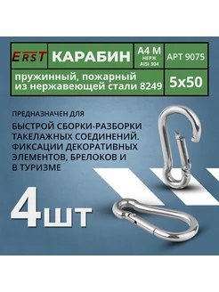 Карабин Нержавеющий 5х50, ART 9075, А4 пружинный - 4шт