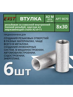 Втулка круглая с внутр.резьбой ART 9070 А2 D11 М8х30мм