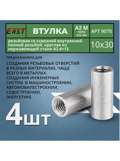 Втулка круглая с внутр.резьбой ART 9070 А2 D13 М10х30мм