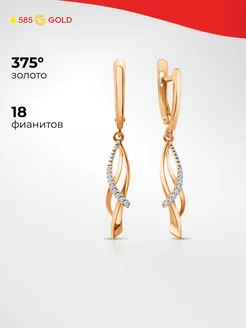 Серьги женские с фианитами из красного золота 375 пробы 585G
