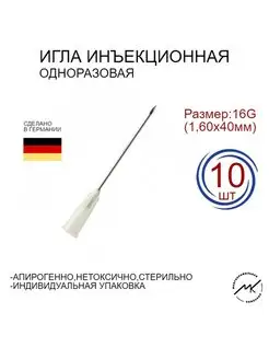 Игла инъекционная одноразовая 16G (1,60х40мм)