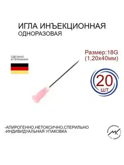 Игла инъекционная одноразовая 18G (1,20х40мм)