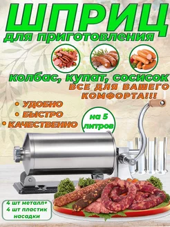 Шприц колбасный горизонтальный на 5 л.Два комплекта насадок