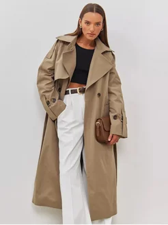 Тренч женский длинный плащ весенний хаки оверсайз тренчкот