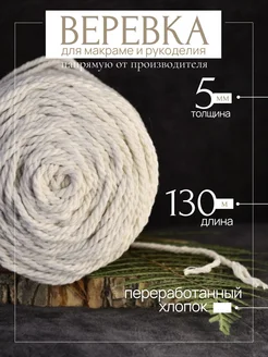 Трехпрядный хлопковый шнур-веревка 5мм для макраме рукоделия