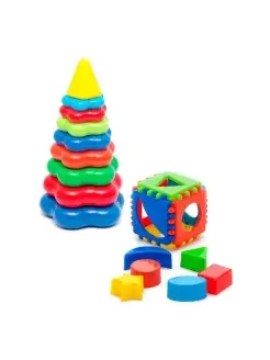 Сортер кубик малый + Пирамидка большая развивающие игрушки