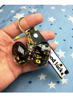 Брелок переливающийся Бантик с блестками и буквами