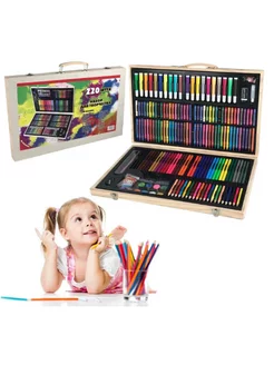 Набор для рисования и творчества 220 шт в деревянной коробке