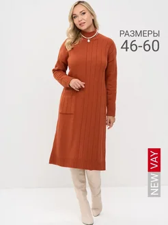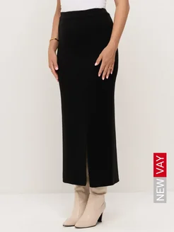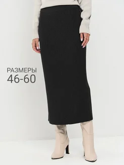 Юбка теплая длинная больших размеров вязаная в рубчик