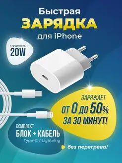 Быстрая зарядка на iphone Блок type-c 25W + кабель