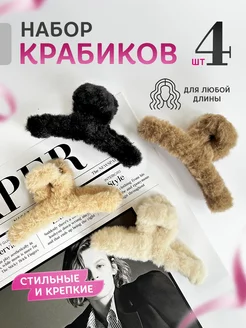 Крабик для волос пушистый, набор заколок женские 4 штуки