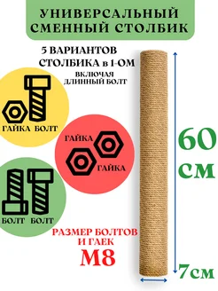 Столбик сменный для когтеточки 80 см с двумя болтами