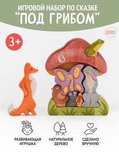Развивающая деревянная игрушка пазл по сказке Под грибом