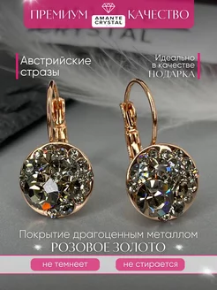 Серьги пусеты бижутерия с кристаллами Swarovski