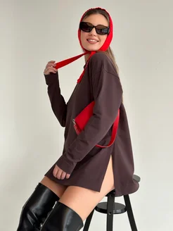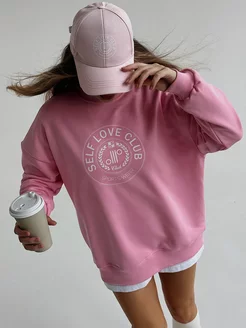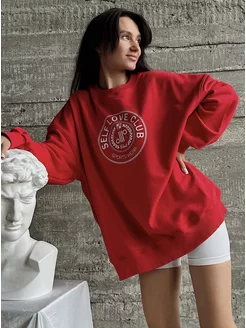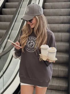 Свитшот оверсайз с принтом без начеса