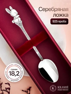 Серебряная ложка на крещение Зайчик