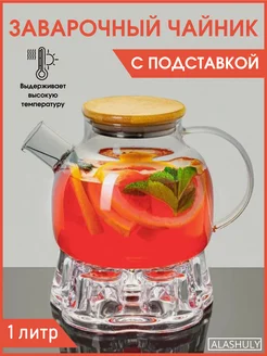 Чайник заварочный стеклянный 1000 мл с подставкой