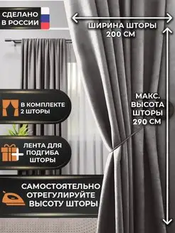 Шторы в гостиную и спальню затемняющие плотные 400х290 серые