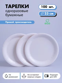 Тарелка бумажная одноразовая 23 см набор 100 шт