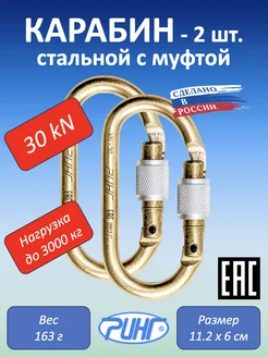 Карабин для альпинизма, овальный с муфтой, 30 кН, 2 шт
