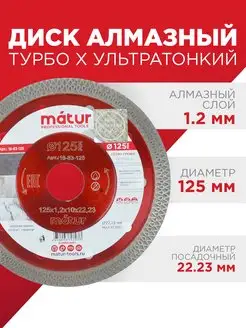 Диск алмазный турбо ультратонкий 125х1.2х10х22мм