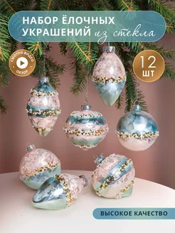 Набор стеклянных шаров елочные игрушки шарики, 12 шт