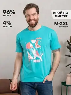 Футболка фирменная PUMA с принтом и надписью хлопковая