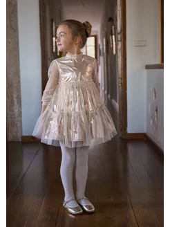 Нарядное платье с пышной фатиновой юбкой и длинным рукавом