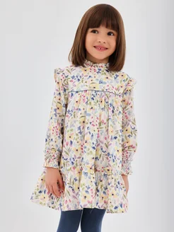 Нарядное осеннее платье в цветочек с длинным рукавом